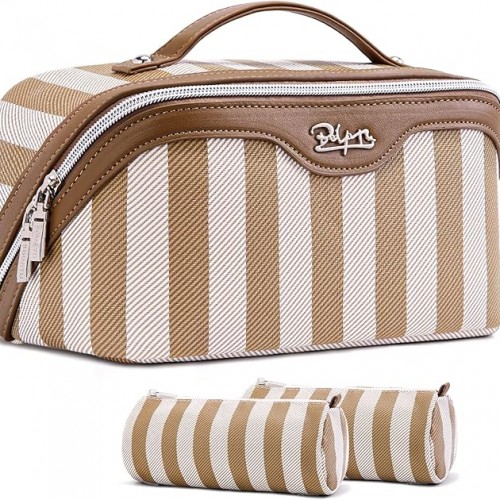 BOYATU Travel Makeup Bag for Women: Large Cosmetic Bag Set of 3 – PU Leather Make up Bag with Compartments – Compact Waterproof Toiletry Bag with Divider & Handle (B-1-Pink)