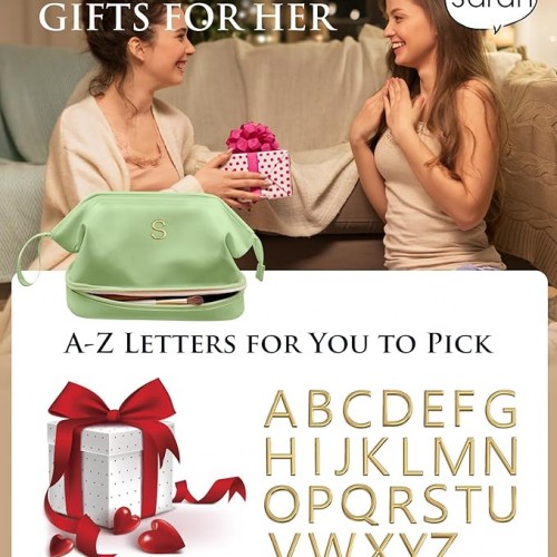 Bridesmaid Gifts, Initial Large Makeup Bag, Bride To Be Gifts, Double Layer Cosmetic Bag, Waterproof PU Travel Toiletry Bag for Bachelorette Party Women Wedding Bridal, Bride Gifts