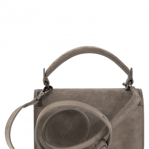 An elegant accessory designed for out-of-town travel, the Weekender bag combines precious materials and refined details in a balance of aesthetics and functionality. Suede defines its retro-inspired flavour with a velvety texture and slightly iridescent hue, while the double handle and shoulder strap make it versatile and practical. The exterior pocket with flap and snap fastener keeps smaller items close at hand. – Zip closure – Adjustable and removable shoulder strap – Double handle – Exterior pocket with flap and snap button – 2 open internal compartments – Inside pocket with zip closure – All metal parts are Nickel-free DESIGNER ID: MBWTU394 C2683