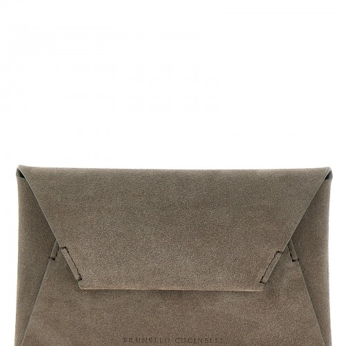‘Monile’ covered leather clutch with inner pocket and magnetic closure.
