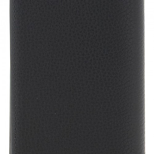 ‘Flint’ grained calf leather card holder with front enamelled metal ‘Equestrian Knight Design’ logo, folding opening, Burberry Check insert inside.