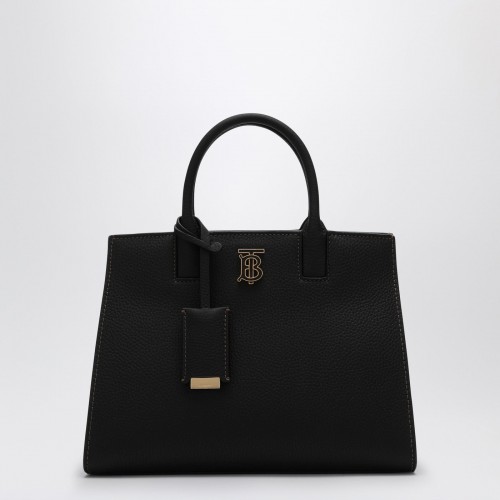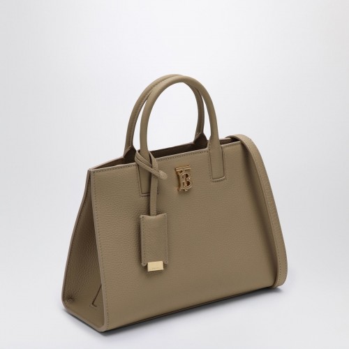 Handbag by Burberry in beige grained calf leather featuring two top handles, an adjustable and detachable shoulder strap, a metal TB monogram on the front, a removable mirror charm, an internal welt pocket with zip, an internal pouch pocket and an external flat pocket.
