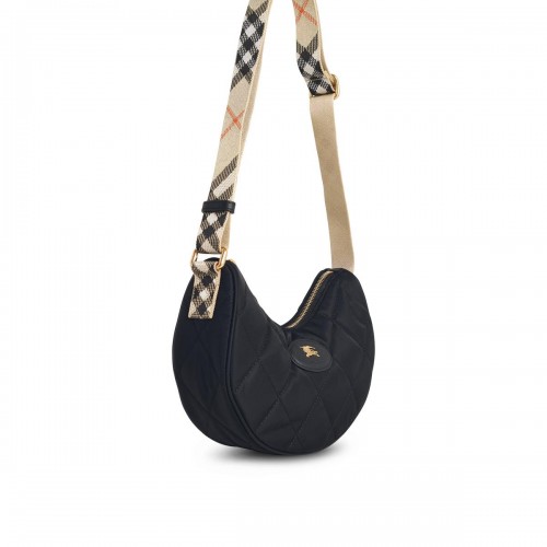 Front logo patch, adjustable check pattern shoulder strap, top zip closure, padded effectn23 x 14.5 x 7.5 cm