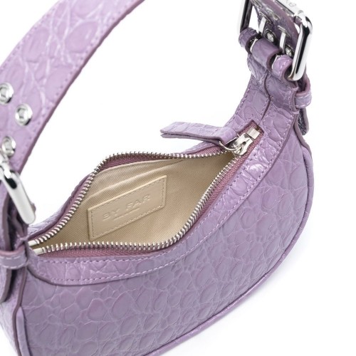 mini Soho crocodile-embossed shoulder bag from BY FAR featuring violet purple, calf leather, cotton, embossed crocodile effect, silver-tone hardware, adjustable shoulder strap, top zip fastening and full lining.