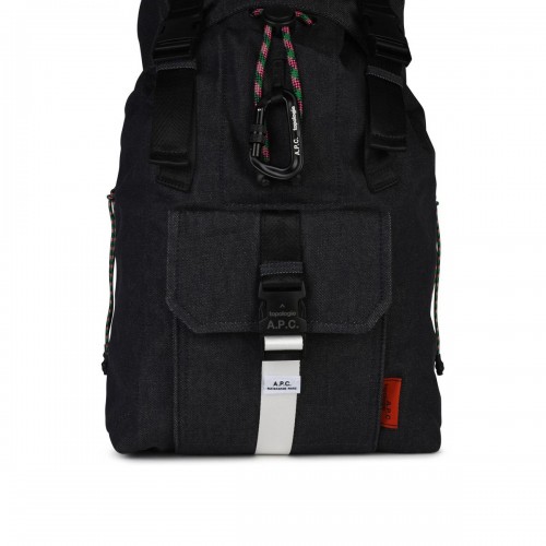 Backpack by Carhartt WIP in blue water-resistant recycled polyester blend canvas, featuring mesh and zipped side pockets, double zip fastening, padded shoulder straps and back for cushioning effect, buckles and front straps for skateboard attachment and square logo label sewn on the front.