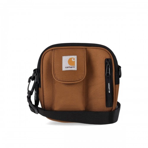 Essential Manta shoulder bag by Carhartt Wip, made of waterproof mixed polyester canvas, in manta gray color. It features an internal lining and has a front pocket with Velcro, adorned with a square logo label in fabric. It also has a small zipped pocket on the front. It has two main openings, which can be closed with a two-way zipper. Equipped with an adjustable strap. Dimensions: 17×16.5×6 cm.