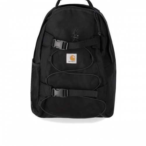 Carhartt WIP Philis backpack made of recycled polyester canvas in shades of blue. Waterproof, it features a main compartment with a padded laptop pocket, a front pocket, a zipper closure, and a flap with a buckle. Adjustable shoulder straps and padded mesh back. Logo patch on the front. Measurements 50x33x13 cm.