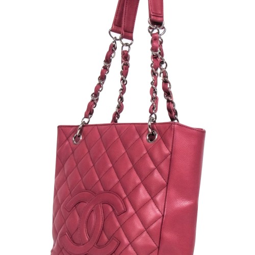 Be the ultimate fashionista with the Chanel Petit Caviar Shopping Tote! This vintage shoulder bag boasts a rich brick red color and luxurious caviar leather. The silver chain strap adds a touch of glamour, making it the perfect “it girl” accessory. Don’t miss out on this must-have piece!