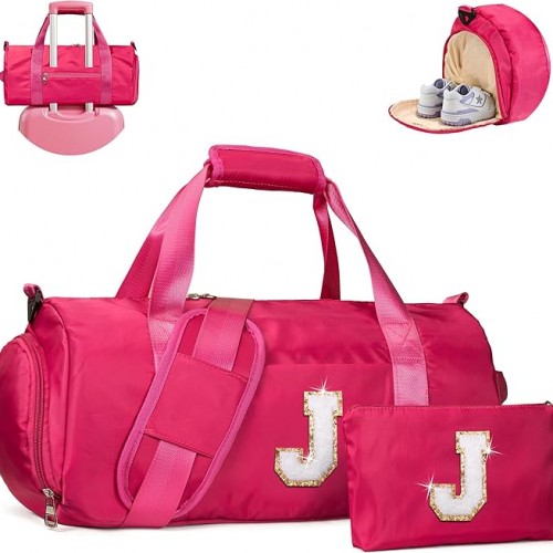 Cheer Up Gifts for Kid, Girls Travel Duffel Bag, Kids Initial Overnight Bags with Shoe Compartment, Personalized Gym Ballet Dance Bag with Makeup Pouch, Birthday Gift Ideas (Letter R)