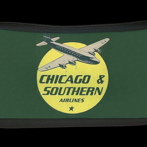 This water resistant travel pouch features an image of a vintage poster of a plane headed to California by air, book today! The flip side is black.