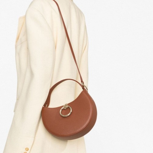 Arlene leather shoulder bag from CHLOÉ featuring cognac brown, calf leather, gold-tone hardware, ring hardware detailing, single flat top handle, adjustable detachable shoulder strap, top zip fastening and main compartment.
