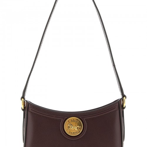 ‘Paddington’ shoulder bag in grenade buffalo leather with metal stud appliqué, maxi front padlock detail with removable keyring, double fixed handle, top zip closure, rigid bottom with metal feet, adjustable side straps, cotton lining.