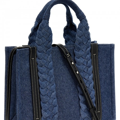 Small ‘Woody’ shopping bag in cotton denim with double woven handle, leather details, removable shoulder strap.