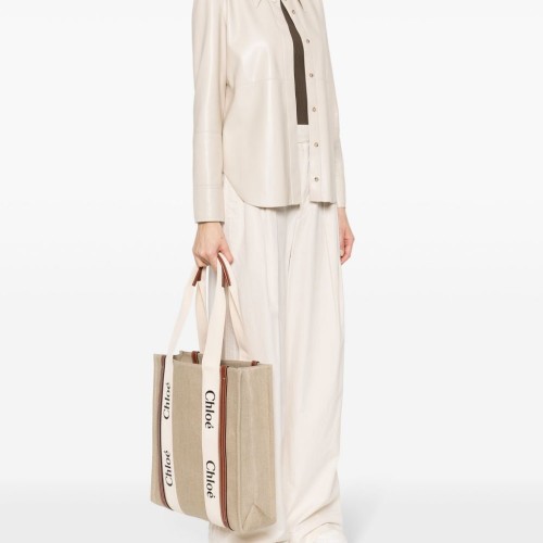 sepia brown, ecru canvas leather trim two long top handles logo-tape detailing hard rectangle body main compartment internal patch pocket internal leather logo patch unlined open top This piece comes with a certificate of authenticity. This piece comes complete with a protective dust bag.