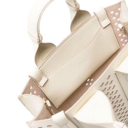 ivory white calf leather grained texture all-over logo embroidery perforated detailing open top two flat top handles adjustable detachable shoulder strap main compartment internal slip pocket debossed internal logo suede lining gold-tone hardware This piece comes complete with a protective dust bag.