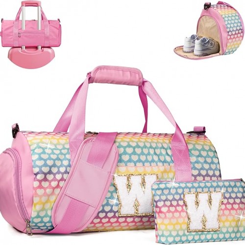 Christmas Gifts for Grandkids, Girls Travel Duffel Bag, Kids Initial Overnight Bags with Shoe Compartment, Personalized Weekender Bag with Makeup Pouch, Gift for 8 Year Old Girl (Letter S)