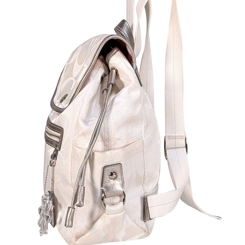 Get weekend-ready with this playful ivory monogram fabric backpack from Coach. Featuring a charming clear acrylic flower keychain detail, it adds a fresh, fun touch to your summer adventures. Lightweight and stylish, it’s perfect for carrying all your essentials while keeping your look effortlessly cool.