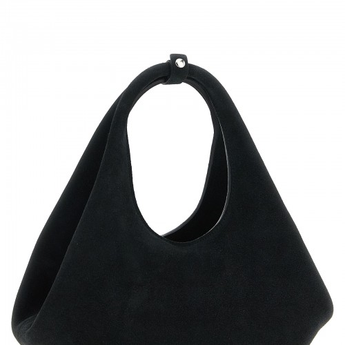 ‘Folded Mini’ suede handbag with front embossed logo, zip closure, double fixed tubular handle.