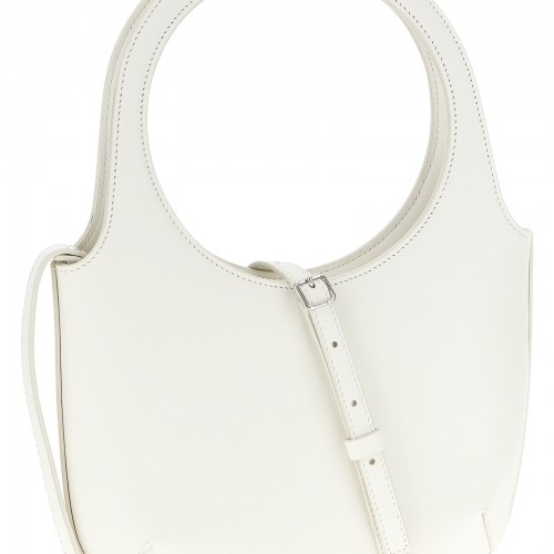 ‘Holy’ leather handbag with front metal logo, double fixed handle with strap detail, magnetic closure, adjustable and removable shoulder strap.