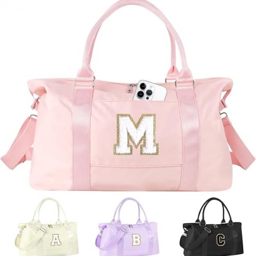 Dance Gym Duffel Bag for Teen Girls, Personalized Initial Travel Weekender Bag,Cute Overnight Carry On Duffle for Women,Sports Travel Cheer Bag,Monogram Christmas Gifts for Tween Preppy(beige-H)