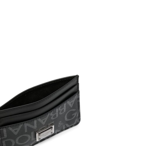 black/medium grey calf leather/cotton jacquard logo motif silver-tone logo plaque card slots note compartment