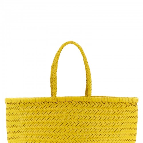 ‘Capri’ woven straw and leather shoulder bag, double fixed handle, magnetic folded closure with leather strap and metal buckle, removable leather clutch.