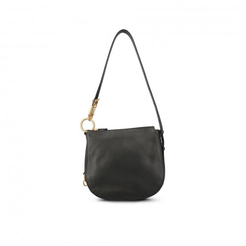 – Composition: 100% calf leather – Adjustable shoulder strap – Flap top magnetic closure – Embroidered logo detail – Width 8 cm – height 21 cm – Lenght 28 cm – Metallic leather – Made in Italy –