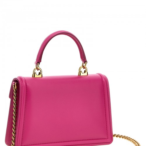 ‘Devotion’ leather handbag with magnetic flap closure with jewel heart detail, top handle, chain shoulder strap.