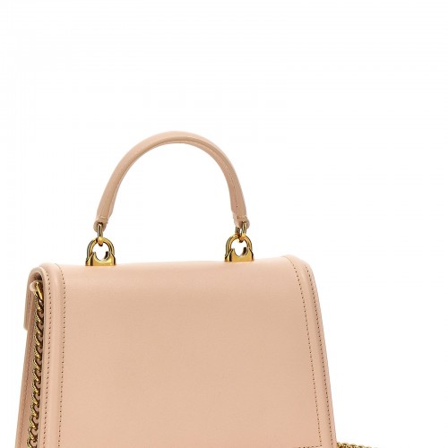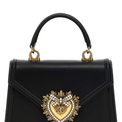 Small ‘Devotion’ handbag with flap closure, sacred heart buckle with beads, smooth leather with shoulder strap.
