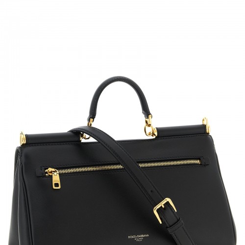 ‘My Sicily’ plongé calf leather handbag, flap closure with tuck-in mechanism and metal tag with front engraved logo, fixed handle, back zip pocket, adjustable and removable shoulder strap.