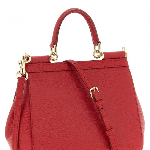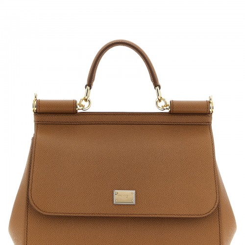 Dauphine ‘Sicily’ calf leather medium handbag, flap closure with metal snap mechanism and front bigalvanic logo tag, fixed handle, metal details, printed fabric lining, adjustable and removable shoulder strap.