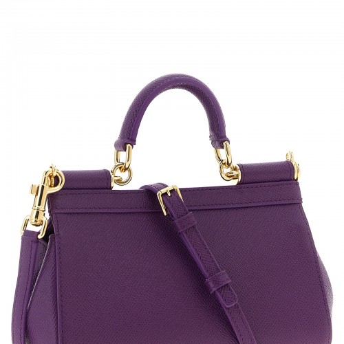 Small ‘Sicily’ Dauphine calf leather handbag, flap closure with metal snap mechanism and front bigalvanic logo tag, fixed handle, metal details, printed fabric lining, adjustable and removable shoulder strap.