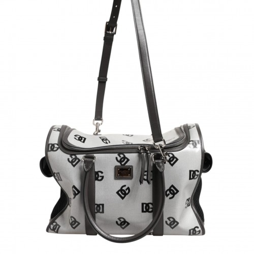 Gorgeous brand new, 100% Authentic Dolce & Gabbana pet carrier bag features a white design adorned with the iconic DG logo plaque for a luxurious touch. Crafted with premium materials, it includes a structured top handle and ventilated sides, combining style and comfort for your pet during travel.