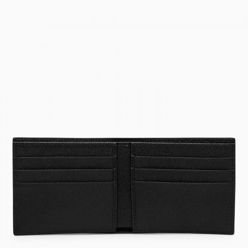 Black grained leather wallet from Dolce & Gabbana featuring a metal plaque on the front, six card slots, a banknote compartment and two flat pockets.