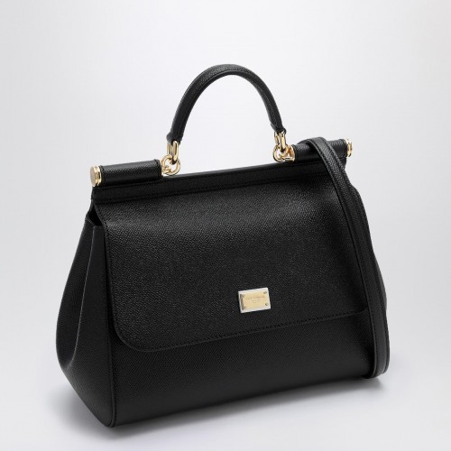 Bag by Dolce & Gabbana in black grained leather, featuring frontal flap, hidden snap closure, handle, adjustable and removable shoulder strap, label with logo, internal zip pocket with logo, pocket for the smartphone and metal feet.