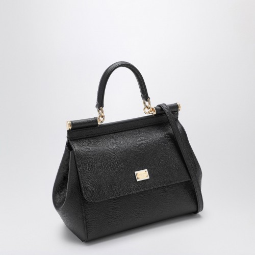Bag by Dolce & Gabbana in black grained leather, featuring frontal flap, hidden snap closure, handle, adjustable and removable shoulder strap, label with logo, animalier print lining and metal feet.