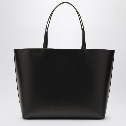 Black leather tote bag from Dolce & Gabbana featuring an embossed logo on the front, two leather top handles, an internal zipped pocket, an all over logo printed lining and gold-tone metal hardware.