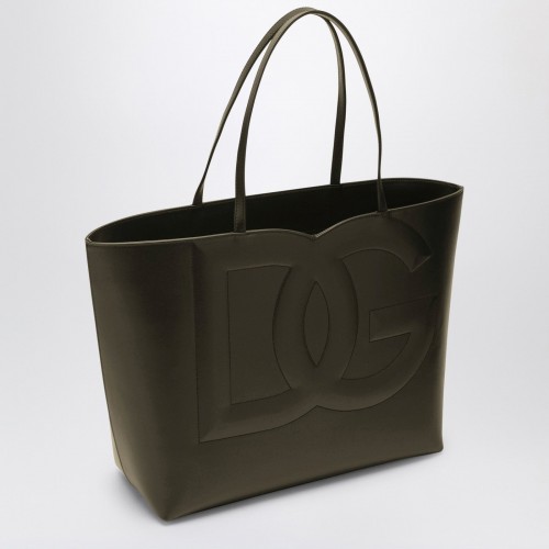 Black leather tote bag from Dolce & Gabbana featuring an embossed logo on the front, two leather top handles, an internal zipped pocket, an all-over logo printed lining and gold-tone metal hardware.