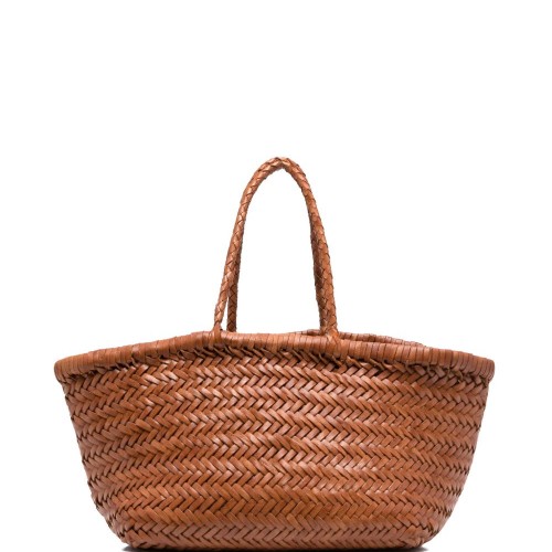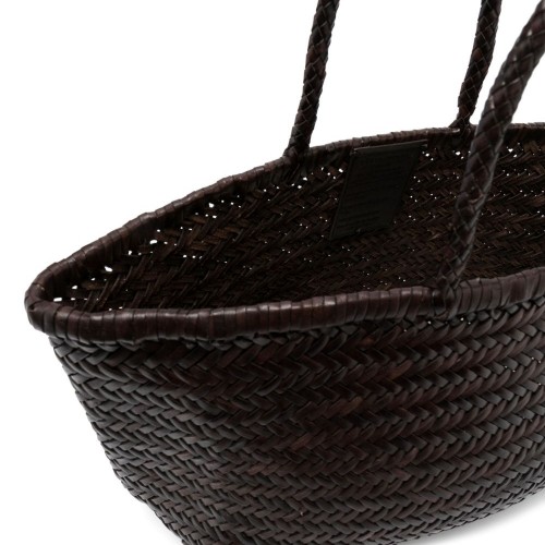 cedar brown leather interwoven design two top handles main compartment charm detail internal logo patch