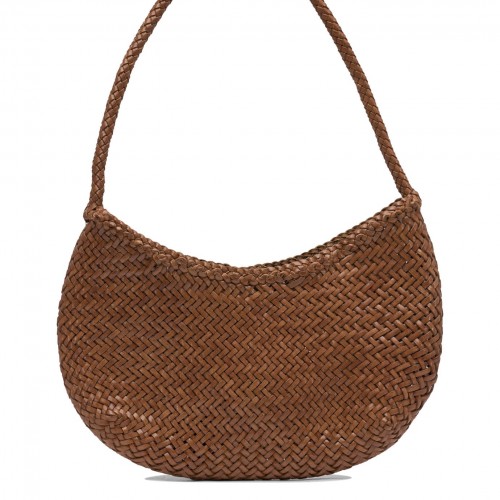 Dragon Diffusion medium “Hobo Salvage” shoulder bag, made with flake weave that creates an irregular texture on the surface. The soft structure adapts to the shape of the body, while the curved silhouette retains a sleek silhouette. The flat, adjustable shoulder strap allows for a customized fit designed for shoulder wear. The product features finishes without additional decorative elements, with unlined interior.
