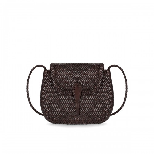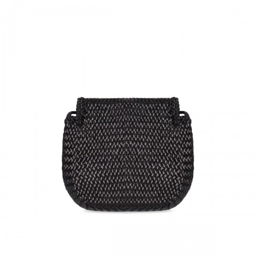 Mini City Dragon Diffusion crossbody bag, made of woven black leather. Slim, non-adjustable shoulder strap, clasp closure, unlined interior. Dimensions: 21x17x5 cm.