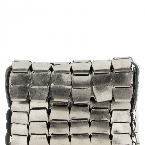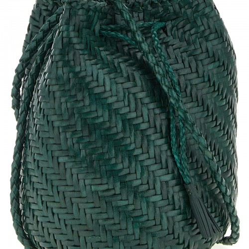‘Pompom Double Jump’ bucket bag in hand-woven buffalo leather characterized by basket weaving with tightly knit weave, unlined, drawstring closure, shoulder strap.