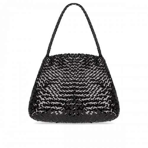 Santa Maria bag by Dragon Diffusion made of black patent leather with a diagonal weave pattern. Unlined interior, equipped with a magnetic closure. Dimensions: 38x14x24 cm.
