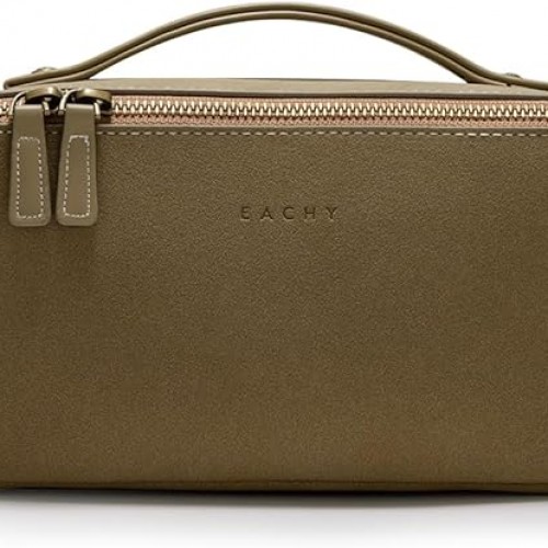 EACHY Travel Makeup Bag, Faux Suede Cosmetic Bags for Women,Large Capacity Portable Pouch Open Flat Toiletry Bag Make up Organizer with Divider and Handle