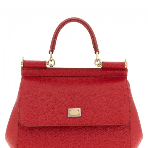 Small ‘Tote’ handbag in leather-effect fabric, maxi front metal logo with hammered leather-effect fabric lining, double fixed handle, top zip closure, adjustable and removable shoulder strap.