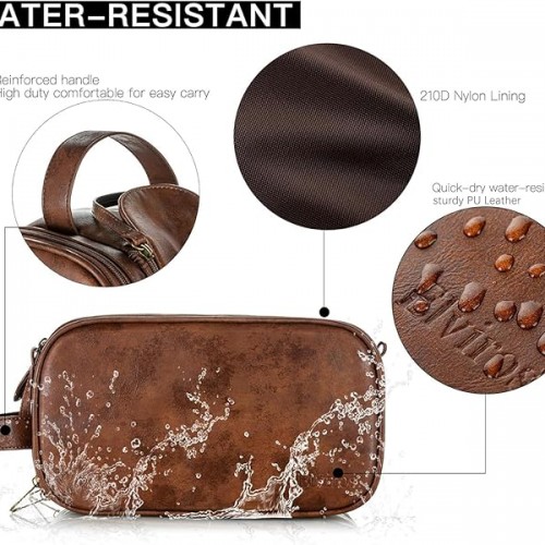 Elviros Hanging Travel Toiletry Bag for Women, 3-in-1 Large Makeup Bag and Cosmetic Organizer, Vegan Leather Waterproof Skincare Case for Travel Size Toiletries and Accessories