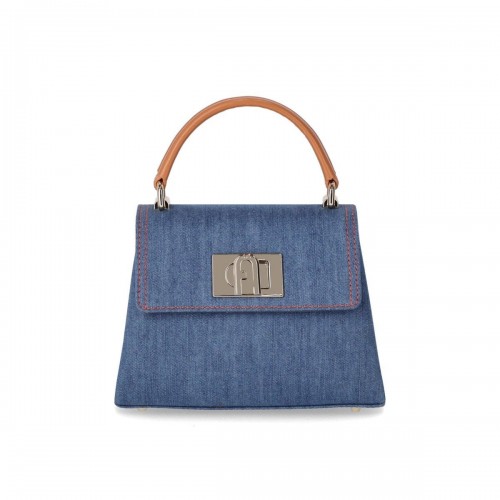 Emporio Armani bag made of black straw-effect fabric, characterized by frayed edges, top handles and detachable logo charm. Lined interior with zip pocket. Closure with carabiner, measurements 30x29x17.5 cm.