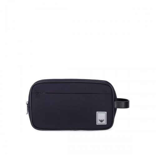 Beauty case by Emporio Armani made of black nylon with regenerated leather inserts, in tone. Interior equipped with flat compartments, external pockets with zip and metal logo on the front. Zip closure, logoed fabric wrist strap, detachable. Size 23x13x5.5 cm.
