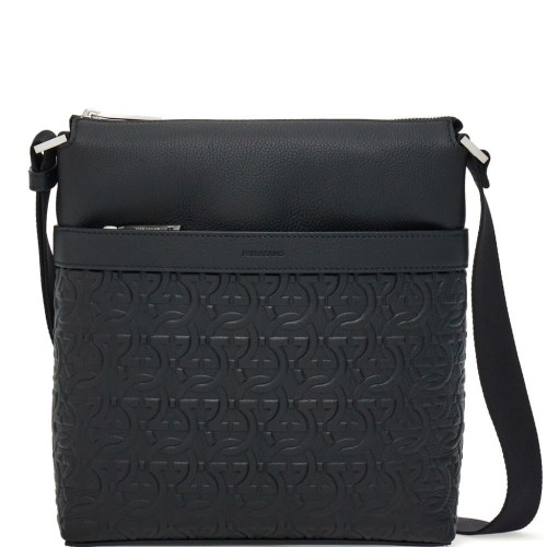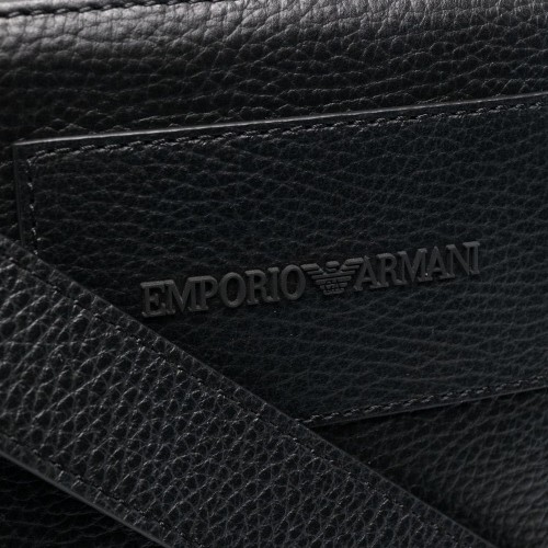Black logo-embossed messenger bag from EMPORIO ARMANI featuring embossed logo to the front, adjustable detachable shoulder strap, top zip fastening and internal zip pocket.