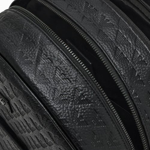 Round-shaped backpack in logoed leather with zip and external pocket.